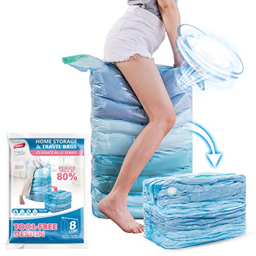 TAILI Vacuum Storage Bags 8 Pack, Blue(31x40x15 Inch), Jumbo Cube Closet Organizers,Extra Large Vacuum Bags for Clothes Comforters Blankets Bedding Duvet,Easy Compression,Space Saver