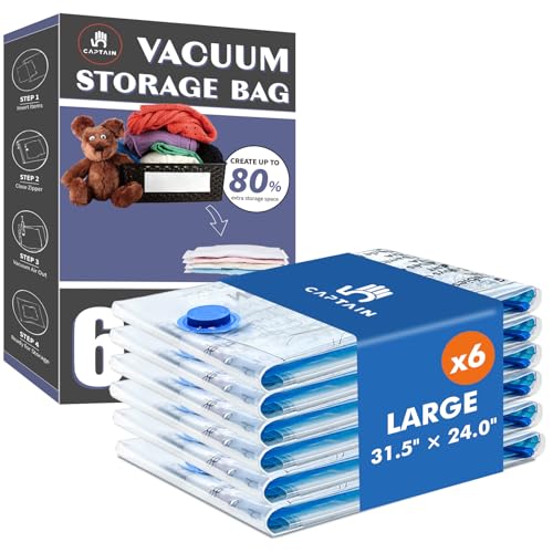 CaptainFive Vacuum Storage Bags Large 6 Packs(31.5'' x 24'), Vacuum Pack Bags for Clothes, Pillows, Comforters, Duvets, Vacuum Bags for Storage for Home Organization, Moving and Storage, Space Saver