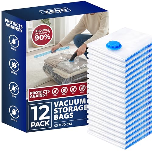 Right Pack Vacuum Storage Bags 12 Pack | Vacuum Storage Bags for Clothes | Airtight & Reusable Vacuum Bags | Space Saving Bags for Clothes, Pillows & More | Large 50 x 70 CM