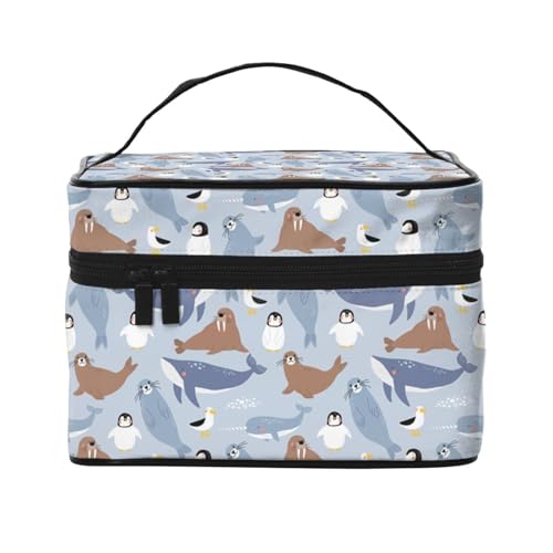 Seal Fox Seagull Whales Makeup Bag, Cute Cosmetic Bags for Women, Toiletry Bag, Large Travel Make Up Organizer Bag