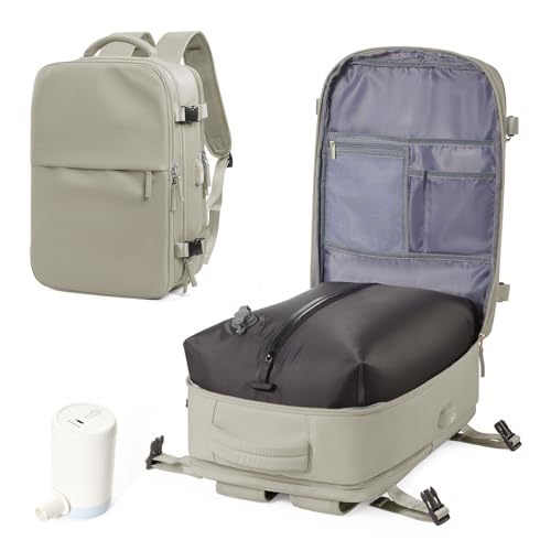 VENATIN Vacuum Backpack Travel, Compression Backpacks,Carry on Backpack with Air Pump,Vacuum Seal Compression Bag, Personal Item Travel Bags, Beige