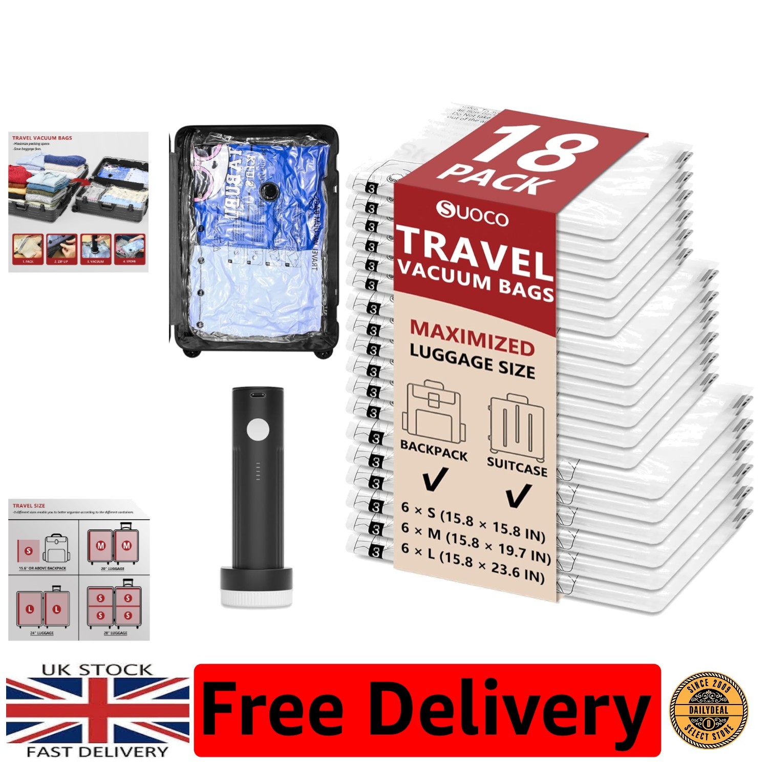 Vacuum Seal Bags for Travel with Pump, 18 Pack Space Saver Organizer UK