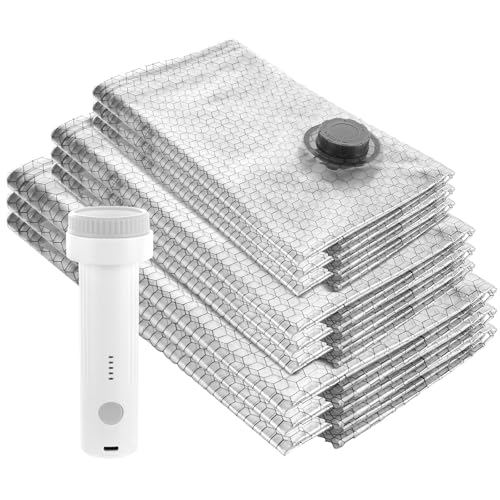 Vacuum Seal Bags for Travel with Rechargeable Pump, 12 Pack Carry on Compression Packing Bags for Luggage, Backpack and Suitcase, Space Saver Storage Organizer for Clothing Clothes