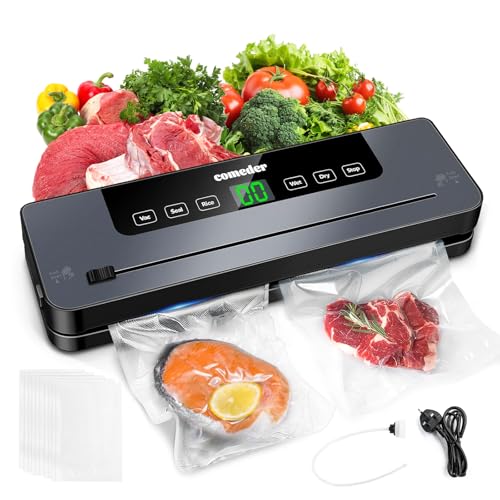 comeder 6 in 1 Vacuum Sealer Machine, 30cm Longer Seal Food Sealer with 50Pcs Vacuum Sealer Bags for Vac/Seal/Rice/Wet/Dry Mode, Built-in Cutter and Visible LED Digital Countdown Display, UK Plug