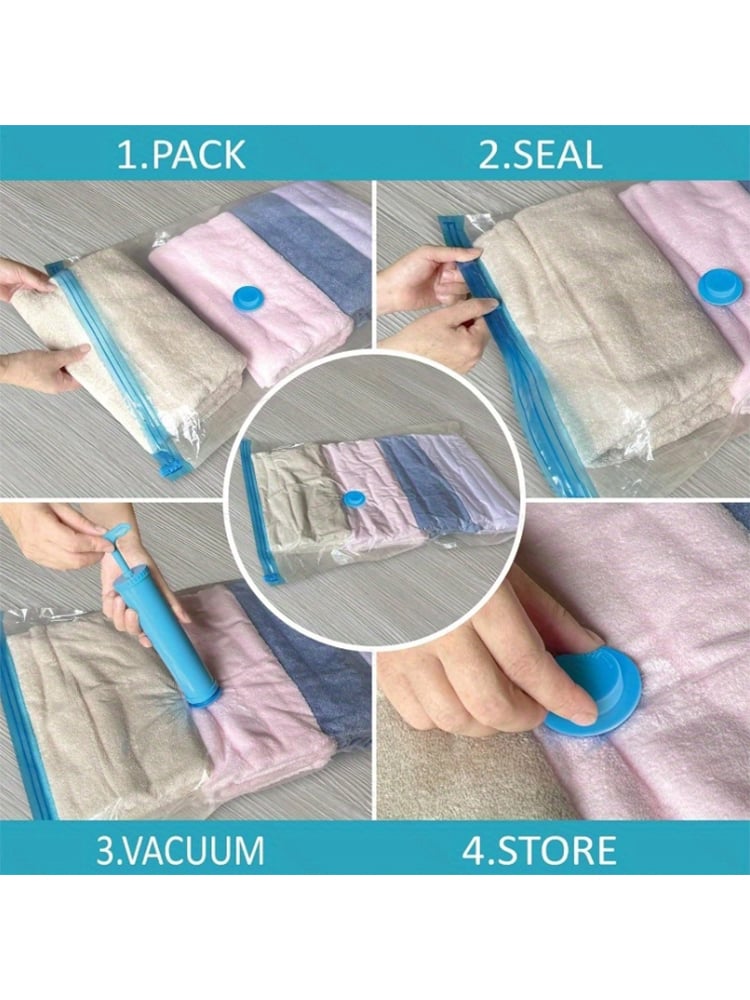 2/3/7 Pcs Vacuum Storage Bags for Clothes/Duvets, Heavy Duty with Hand Pump, Space Saver, Airtight, Reusable, Travel, Packing Cu