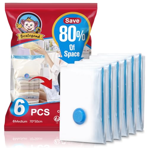 BoxLegend Vacuum Storage Bags 6 Pieces 70 x 50cm Vacuum Bag Clothes Vacuum Storage Bag Travel Reusable and Durable for Clothes, Duvets, Bedding, Pillows Coats