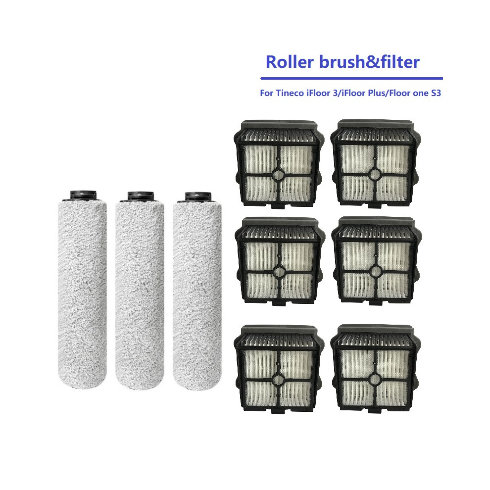 Roller Brush Hepa Filter Vacuum Cleaner Accessories,Cordless Wet Dry Floor Washer Spare Parts.Compatible For TINECO.Compatible For IFloor 3 / Floor One S3 (Color : 9pcs)