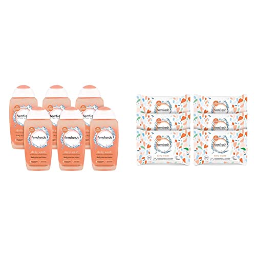 Femfresh Everyday Care Daily Intimate Vaginal Wash - Feminine Hygiene Shower & Bath Gel Cleanser & Intimate Wipes - Flushable & Biodegradable Disposable Feminine Hygiene Vaginal Cloths