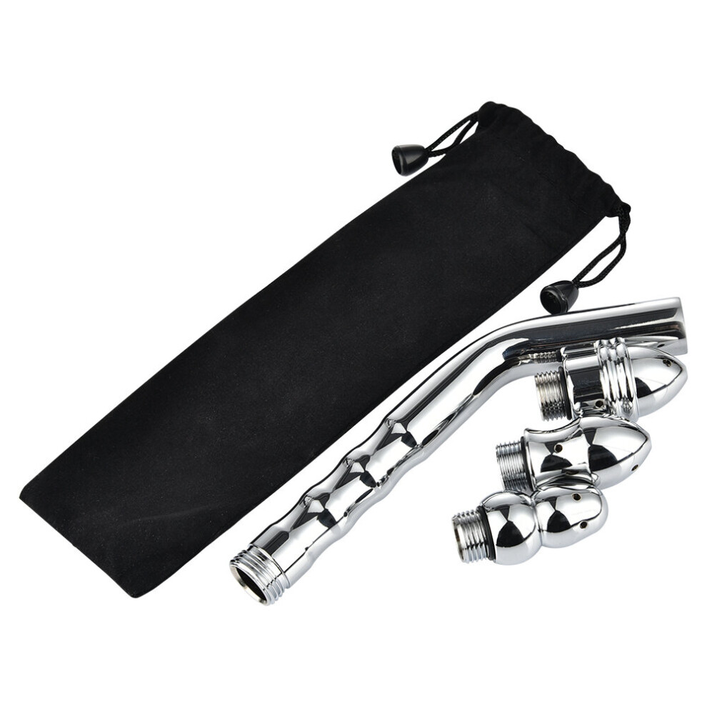 Premium Aluminum Vaginal Anal Cleaner Wash with 2 Shower Heads, Silver, 14.5cm