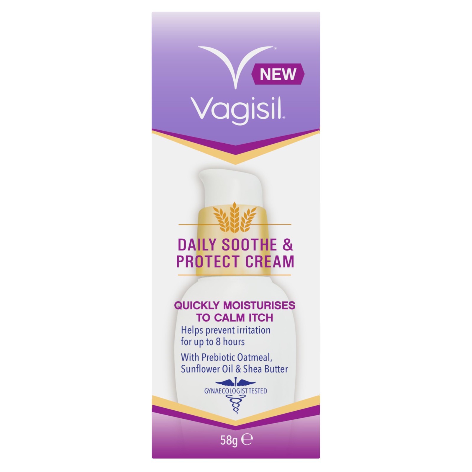 Vagisil Daily Sooth & Protect Oatmeal Cream Pump, 58g. Provides Itch Protection With Prebiotic Oatmeal, Sunflower Oil & Shea Butter