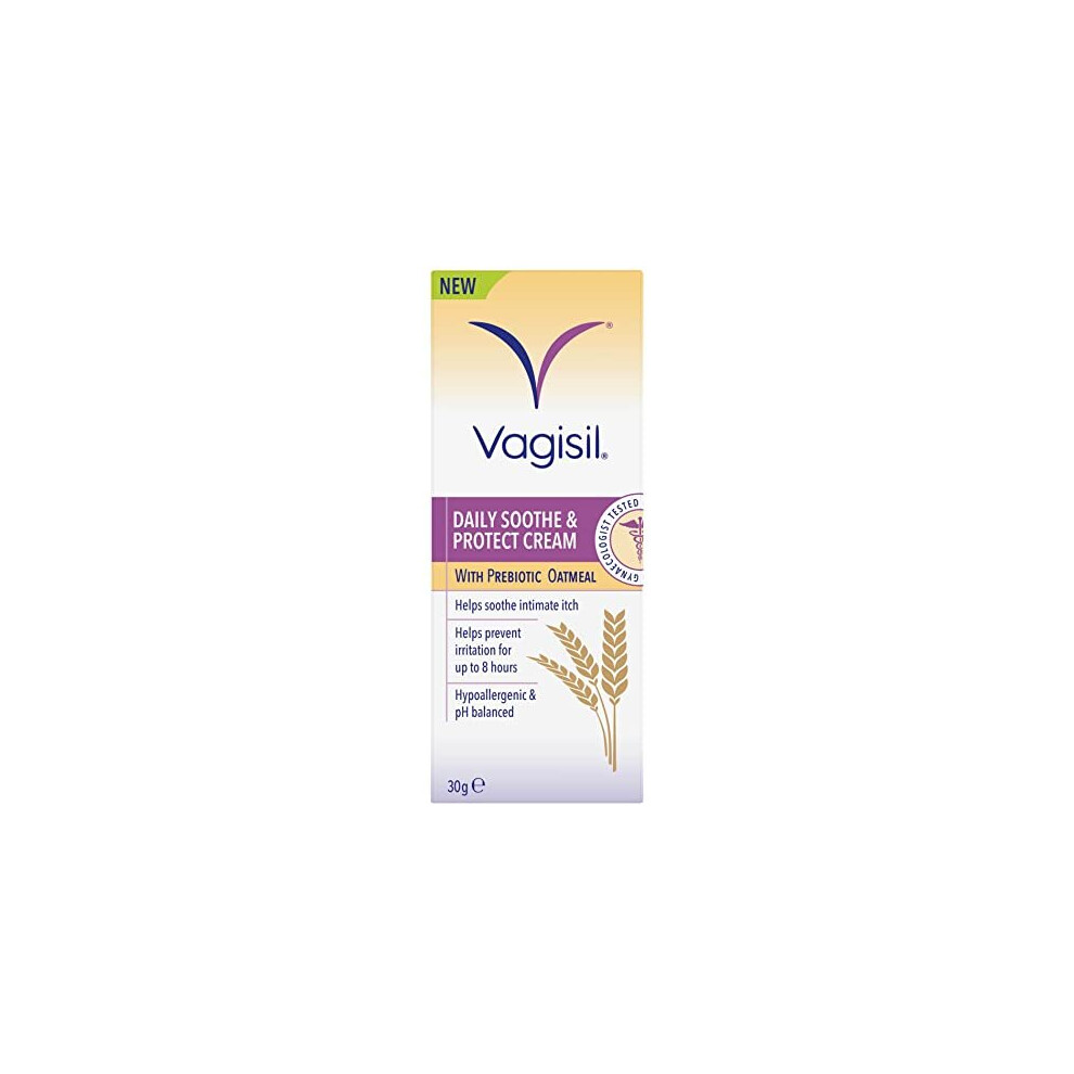 Vagisil Daily Soothe and Protect Cream For Women, Sensitive Skin With Natural Prebiotic Oatmeal, Gentle Formula for Daily Use, Fragrance Free, 30 g