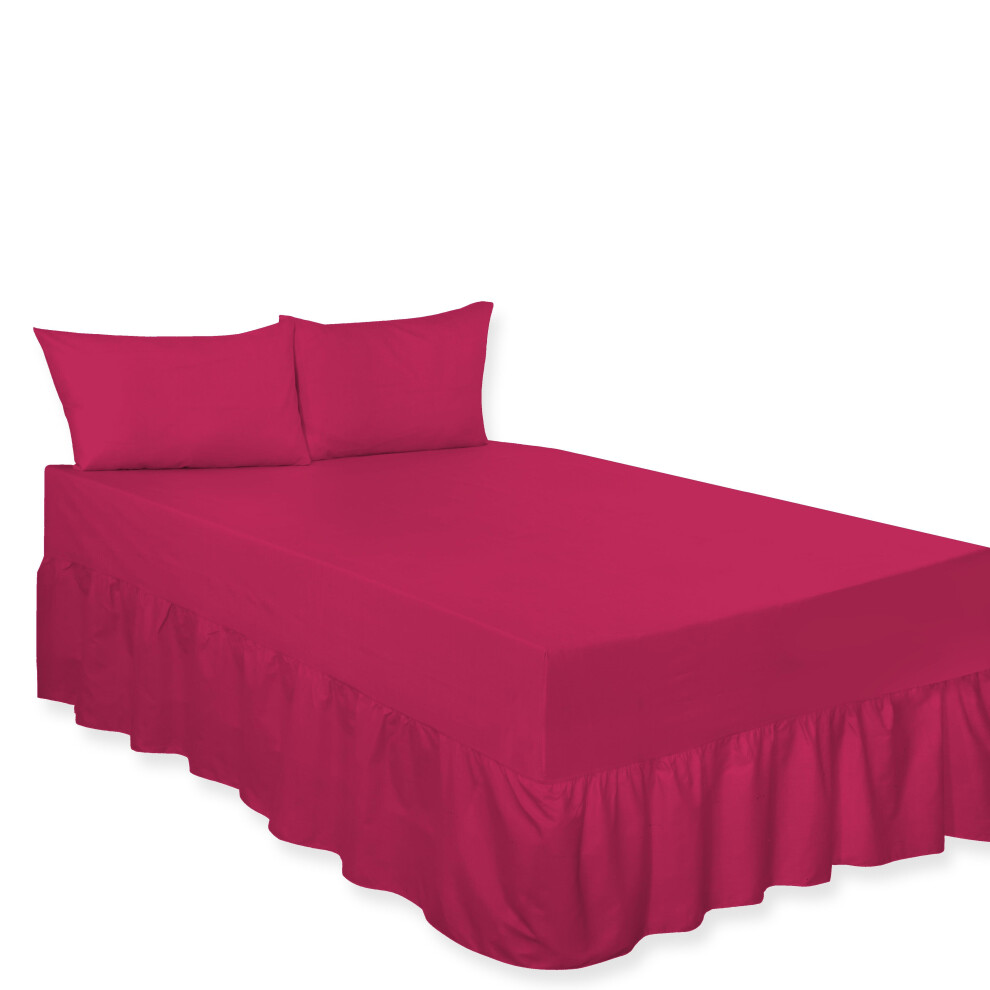 **Textile.Plus** Poly Cotton Frilled Platform Base Valance Sheets OR Pillow Cases Available (Double, Fuchsia)