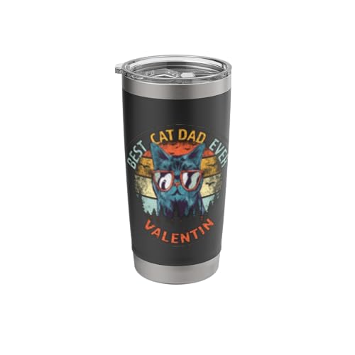 Valentin Best Cat Dad Ever Funny Custom Personalized Name Stainless Steel Insulated Tumbler