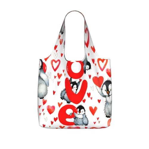 Pcoiuyb Cute Penguins Valentine Day,Shopping Bags Reusable Grocery Bags Foldable Tote Bags Large Capacity Storage Bag
