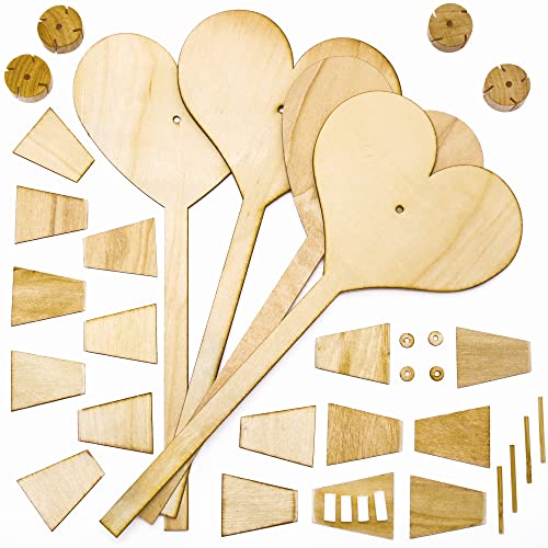 Baker Ross Heart Windmill Wood Craft Set - 4 Pack, Pinwheel Crafting for Kids on Valentine's Day (FC444)