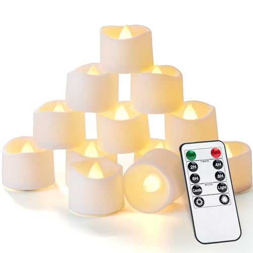 Homemory 12pcs 2/4/6/8 Hours Remote Timer Fake Candles, 400+Hours Flickering Flameless Tealights Battery Operated LED Votive for Wedding Holiday Valentine Decor