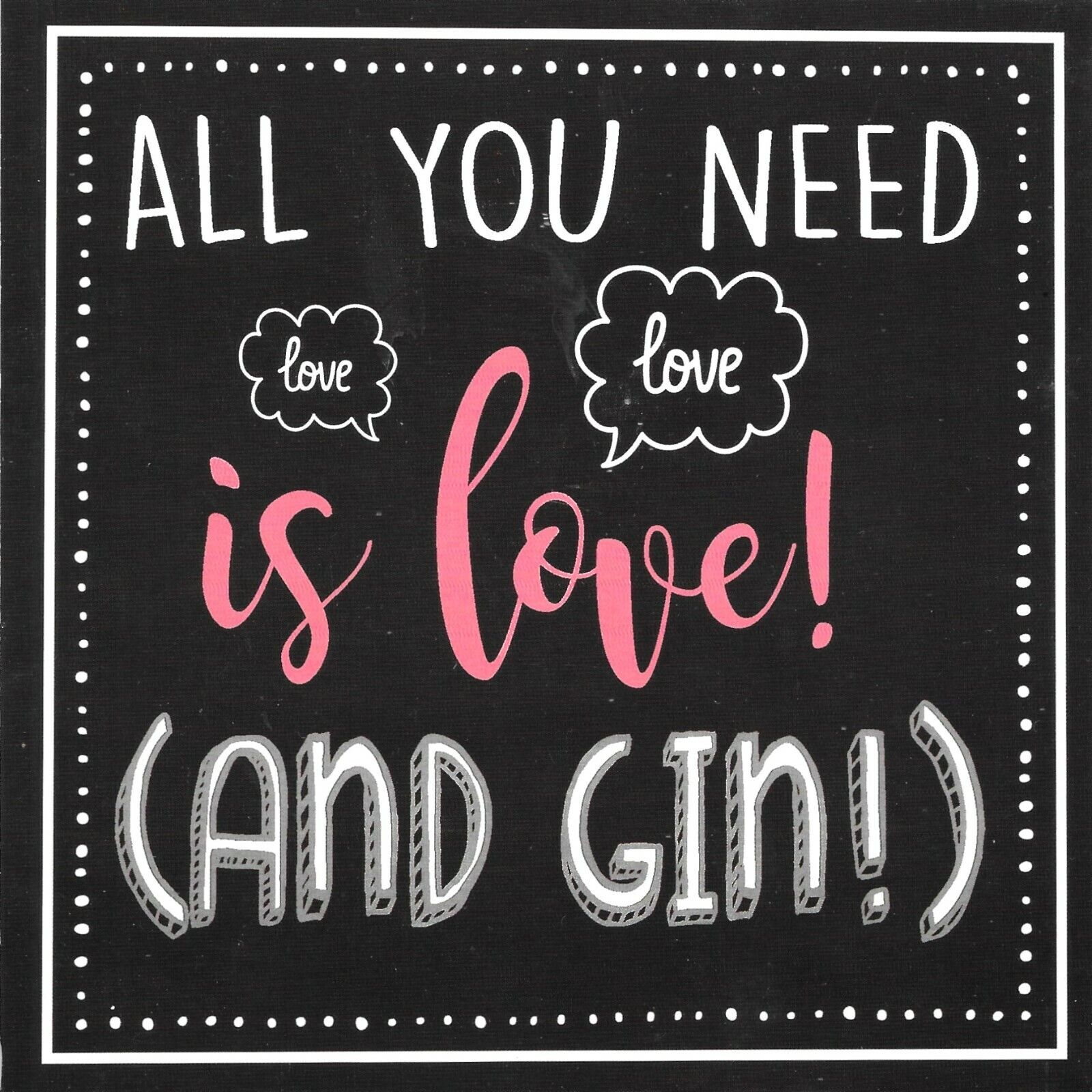 Valentine's Day Card Husband Wife Girlfriend Boyfriend All You Need is Love Gin