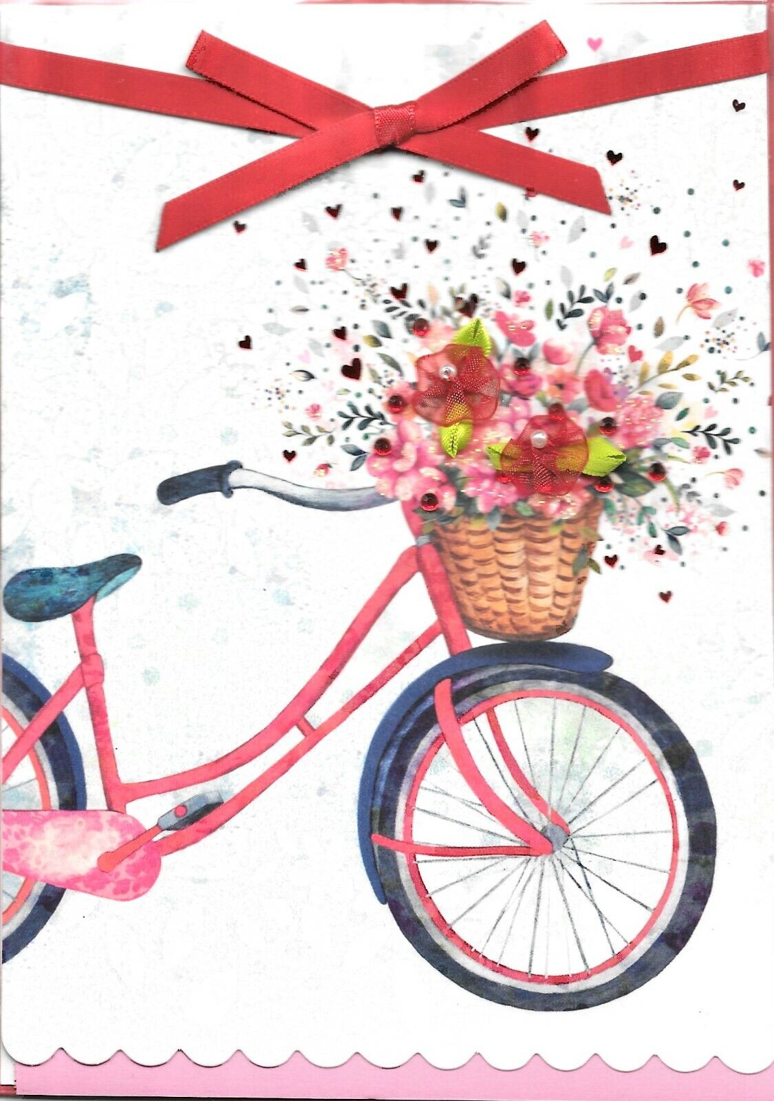 Valentine's Day Card Husband Wife Girlfriend Bicycle Carrier Roses Bow