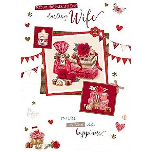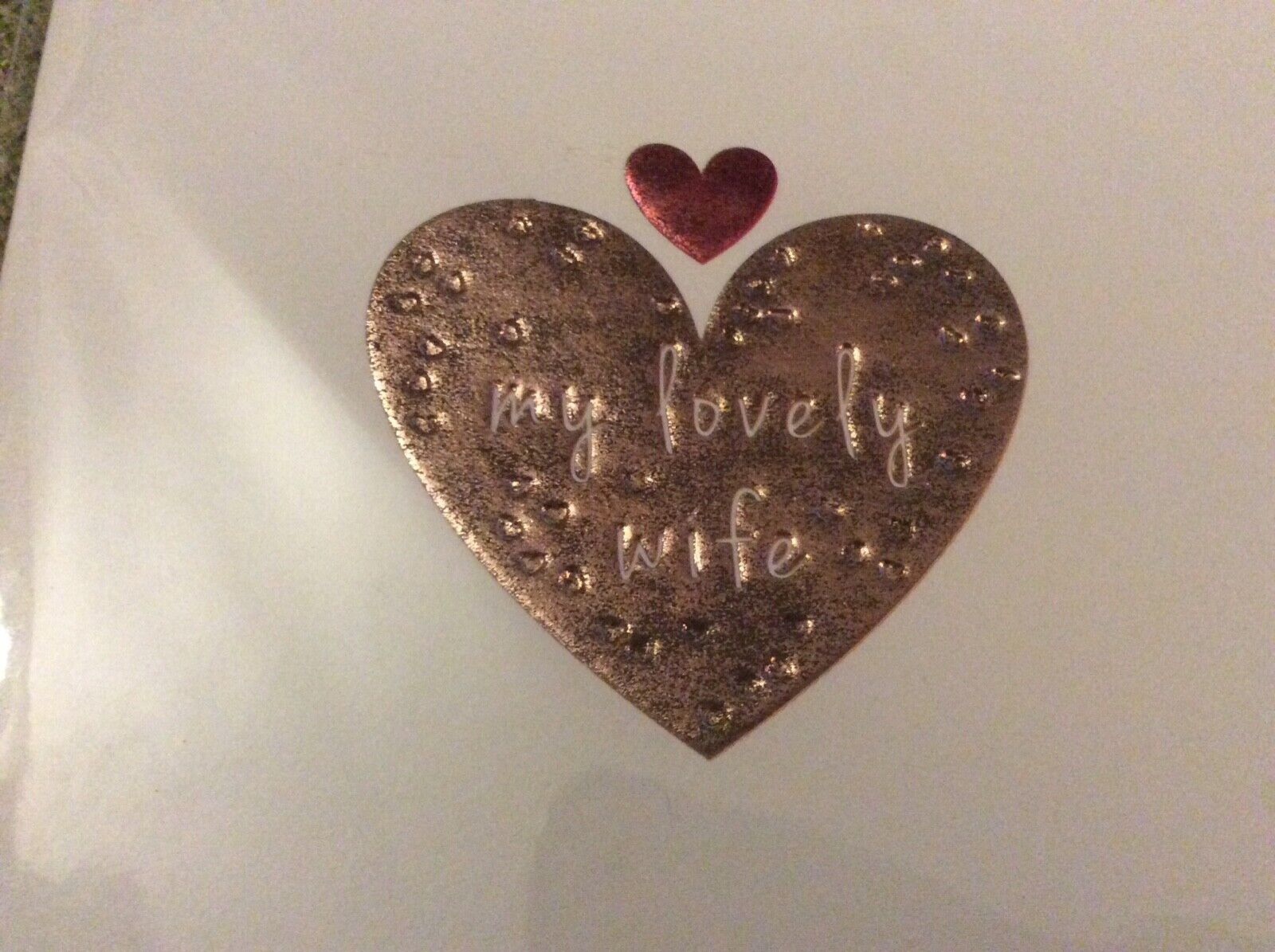 BNIP New Valentine's Card - My Lovely Wife - Gold & Red Metallic Hearts