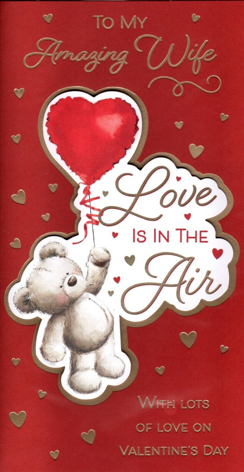Happy Valentine's Day Card Amazing Wife Cute Bear Balloon Love is in the Air