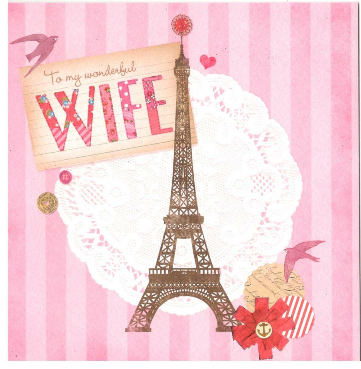Valentine's Card For Wife. To My Wonderful Wife. Tower Design With Cupid.