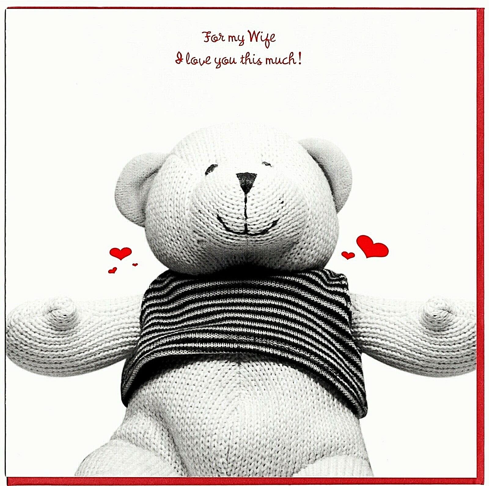 Valentine's Day Card for Wife Knitted Teddy Bear I Love You This Much Cuddly Toy