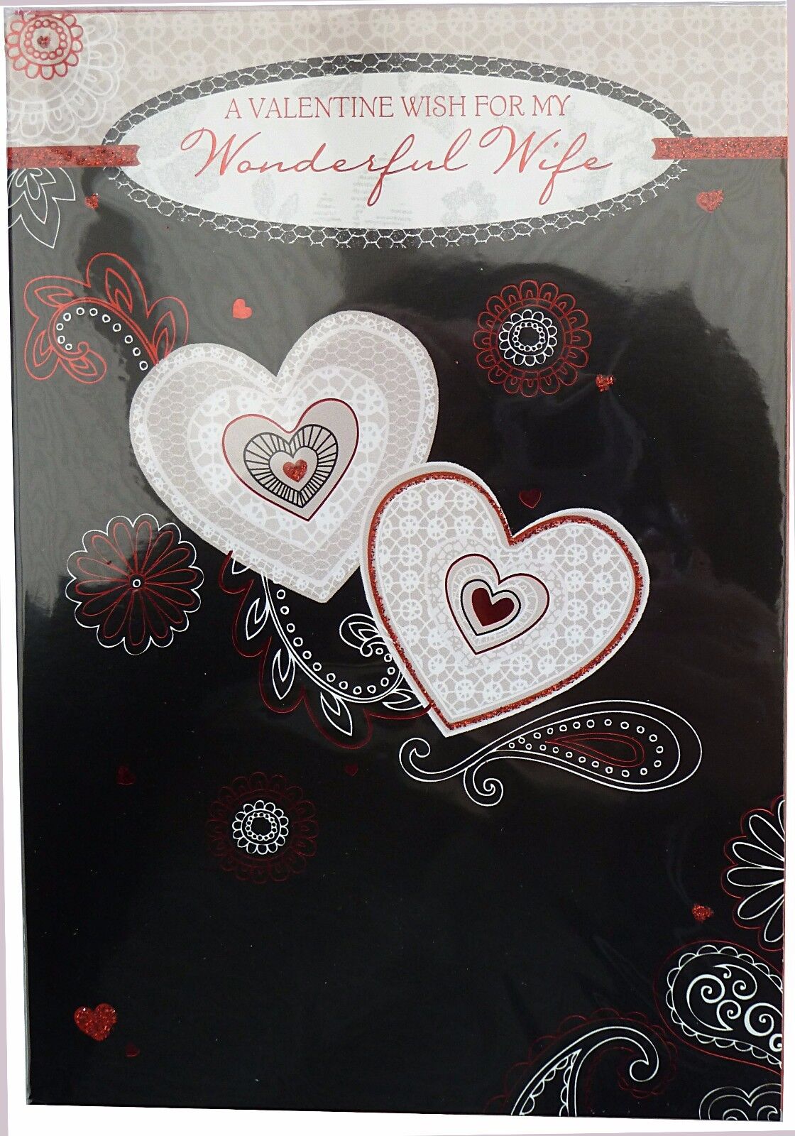 (306) Single Valentine Card - Wonderful Wife Black with Flowers & Heart (Size G)