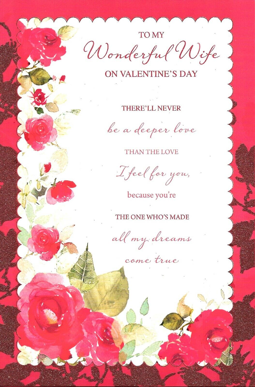 Valentine's Day Card Wonderful Wife Roses Glittery Deeper Love Dreams Come True