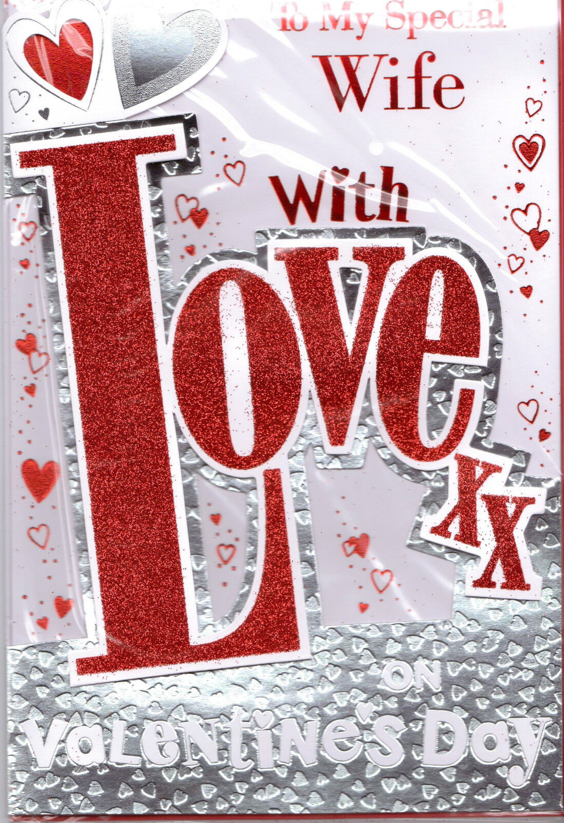 Valentine's Card For Wife. To My Special Wife With Love XX 3 Fold Card.