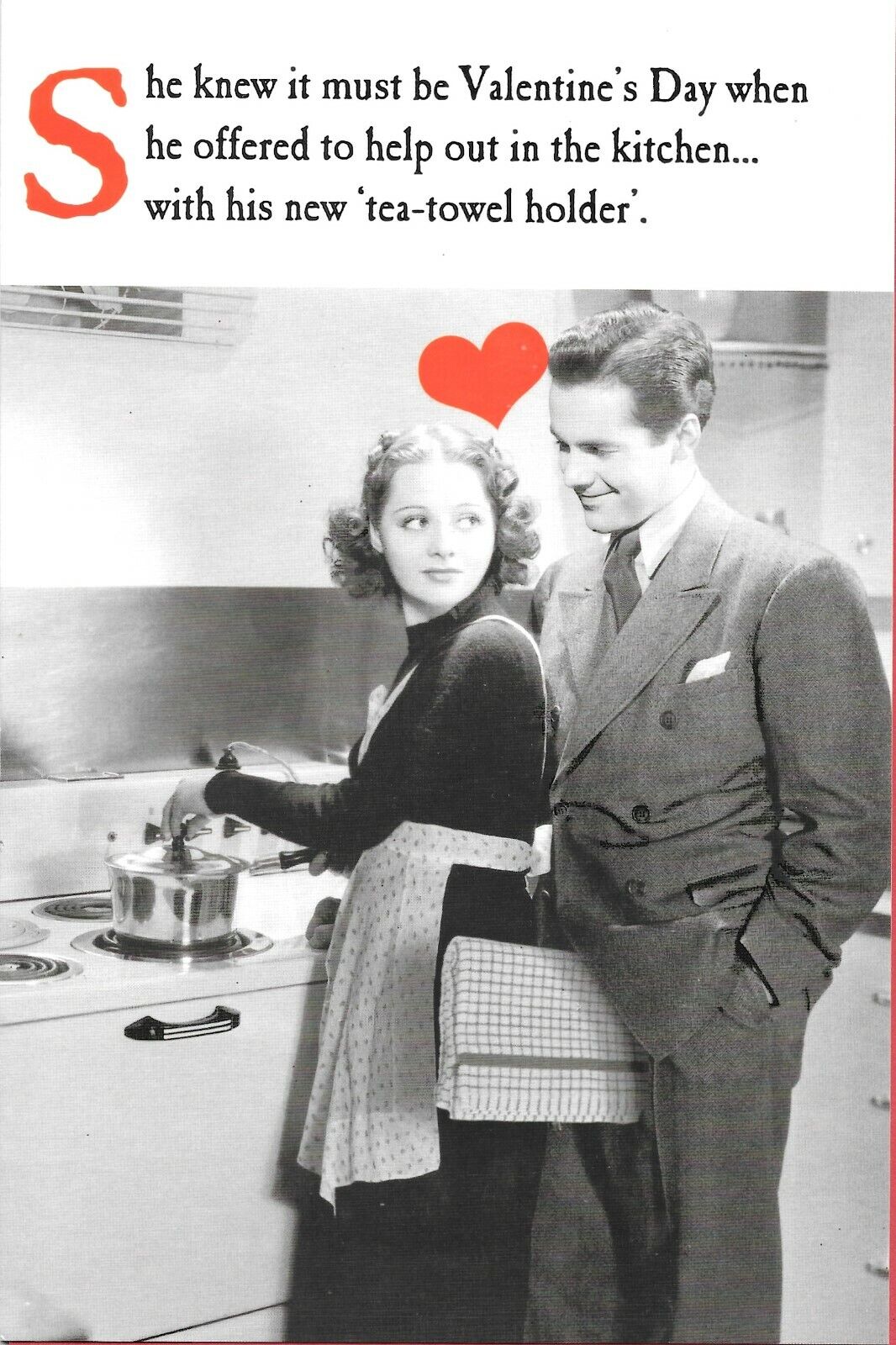 Valentine's Day Card Husband Wife Girlfriend Boyfriend Help in Kitchen Tea Towel