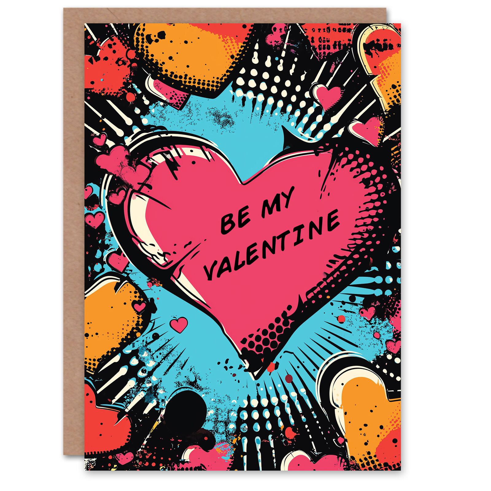 Valentines Day Greeting Card Be My Valentine Heart Pop Art For Her Wife Partner