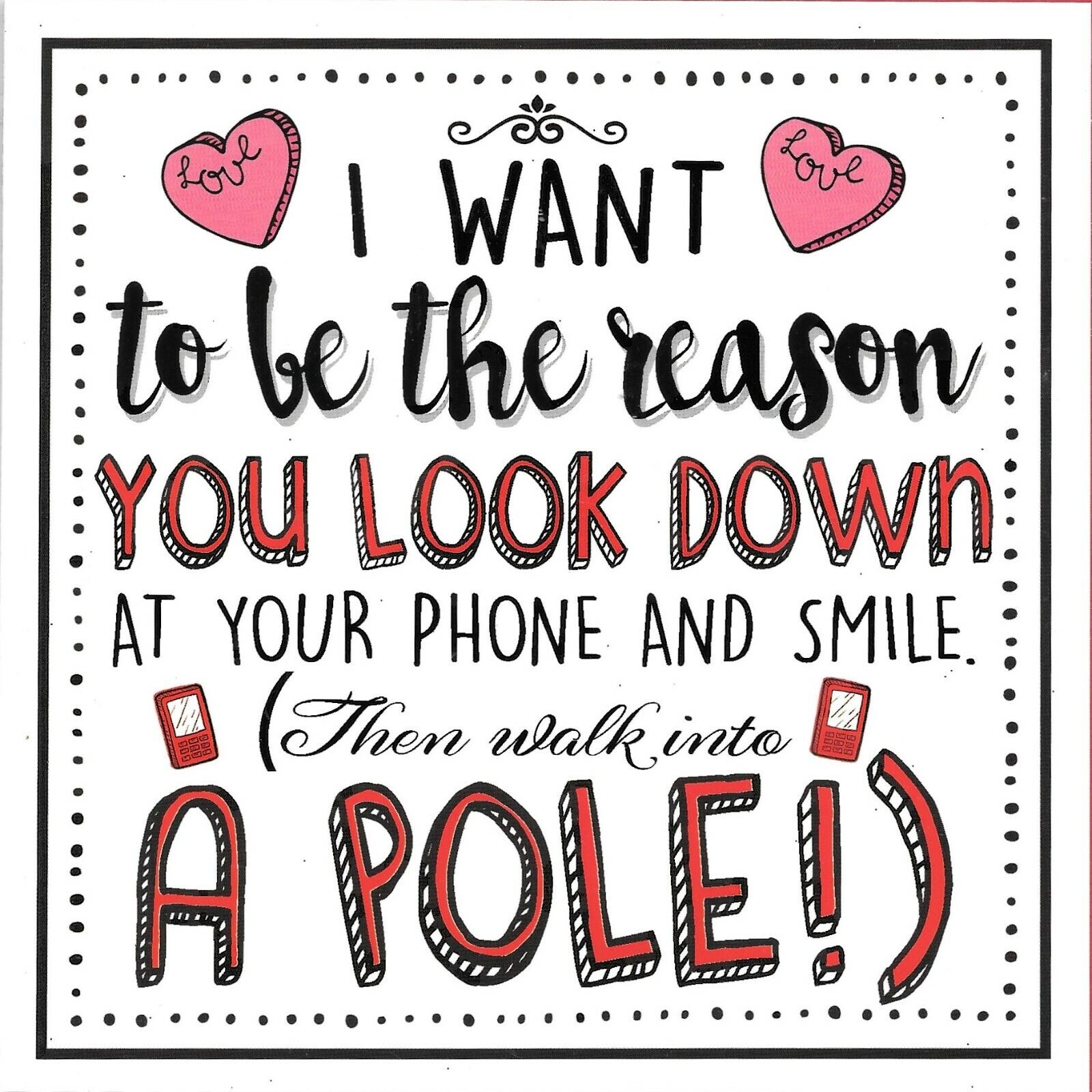 Valentine's Day Card Husband Wife Girl Boy friend Look at Phone Walk into Pole