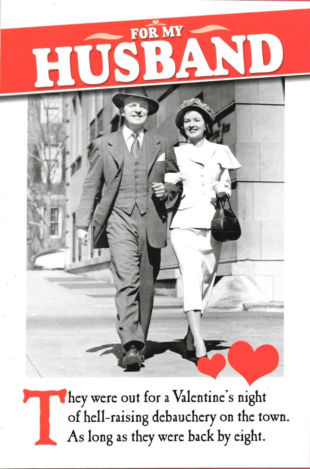 Valentine's Day Card Husband Wife Night on the Town Debauchery Home before Eight