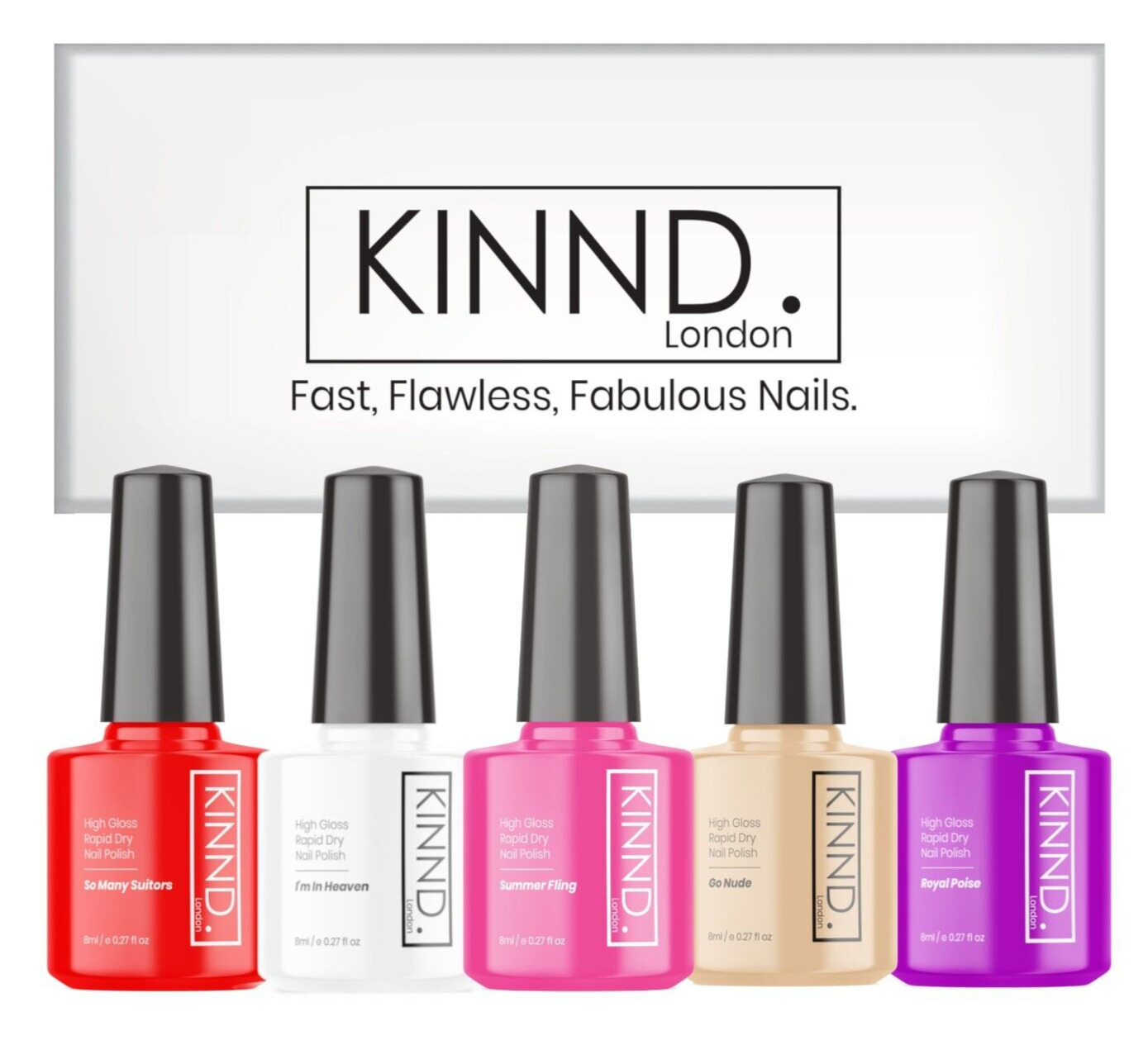 KINND Quick Dry Nail Polish Gift Box - VALENTINE'S DAY SET - 5 x 8ml Instant Dry