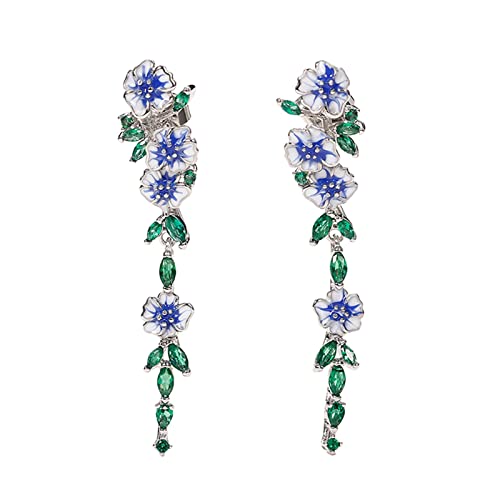 Sbyhbhyds Natural Long Earrings Female Temperament Summer Oil Drop Flower Zircon Earrings Elegant Accessories Valentine's Earrings (Navy, One Size)