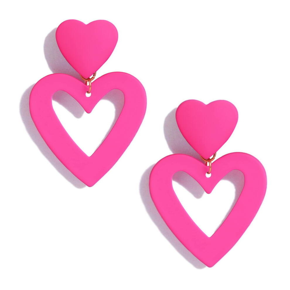 PopTopping Hot Pink Heart Earrings Dangling Heart Drop Earrings For Women Love Heart Dangle Earrings Valentine's Day Mother's Day Gift