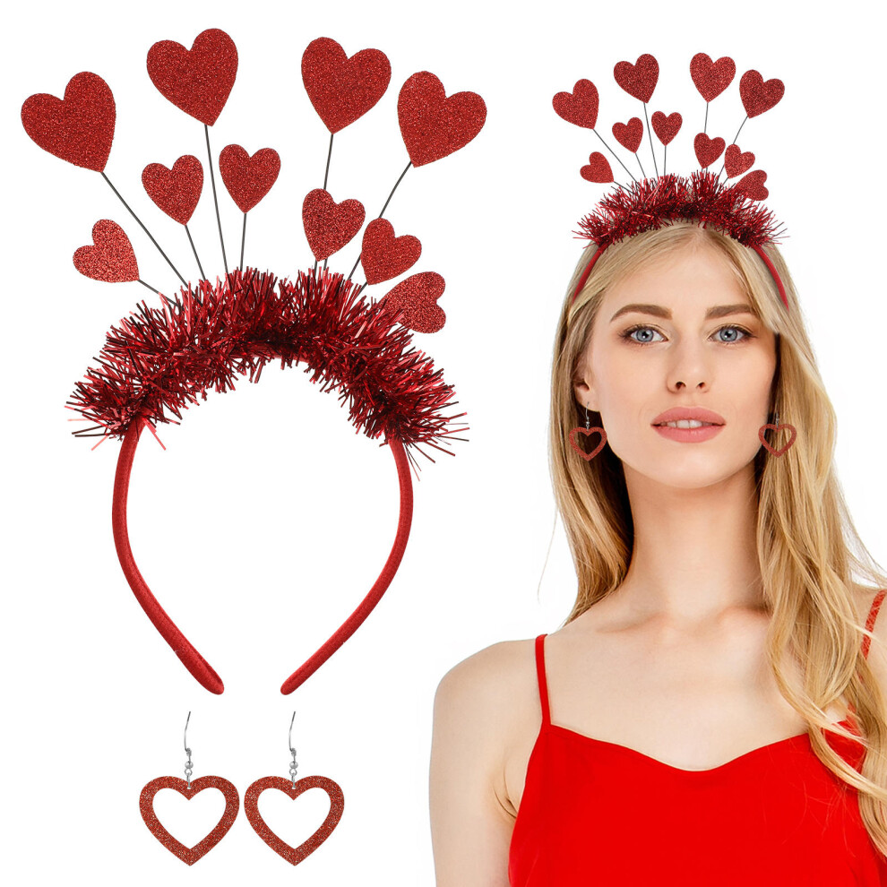 One Set Valentine Heart Headband Earrings Cupid Party Accessories