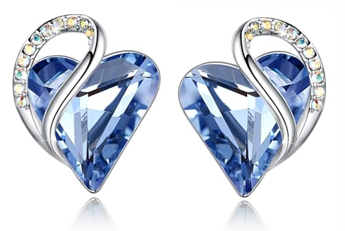 Leafael Valentine's Day Gift Earrings for Women, Infinity Love Birthstone Heart Crystal Studs, Allergy-Free Jewelry for Wife Mom Her, Silver-Tone, Gift Box Included