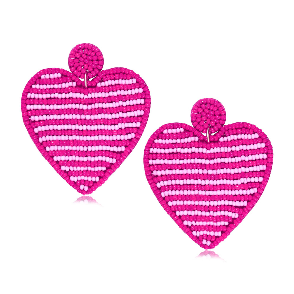 ValentineAs Day Earrings Beaded Heart Drop Earrings Edged in gold beading Fashion Trendy Big Love Dangle Earrings for Women girls Statement Jewelry (