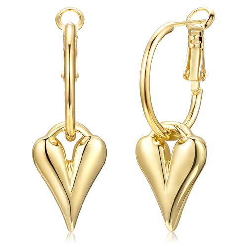 HUABOLA CALYN 925 Sterling Silver Hoop Earrings for Women, Hypoallergenic Loving Heart Drop Hoop Earrings, Silver Huggie Earrings Valentine's Day Jewelry Gifts (Gold)