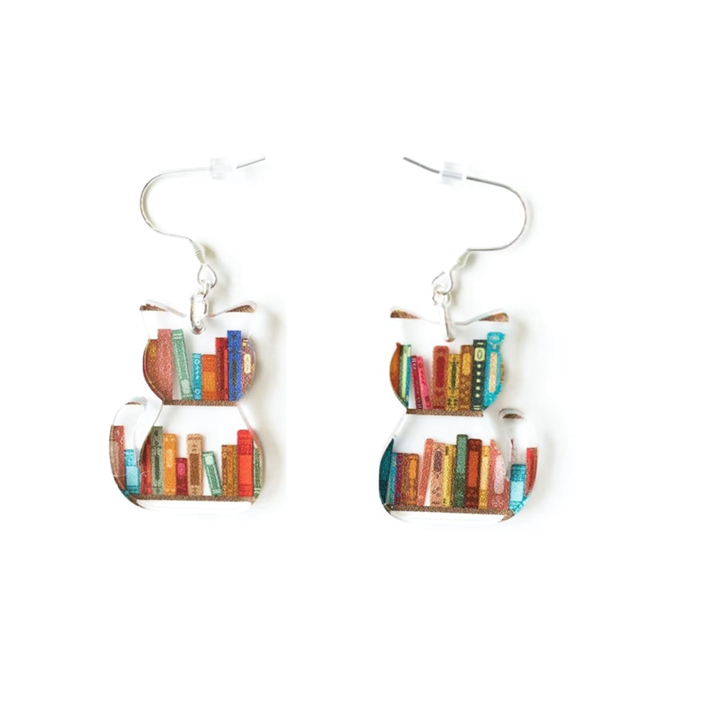 Fun Earrings Cats Book Shelf Earrings,Piercing Dangle Earrings Animal Drop Earrings Valentine's Day Jewelry Gift