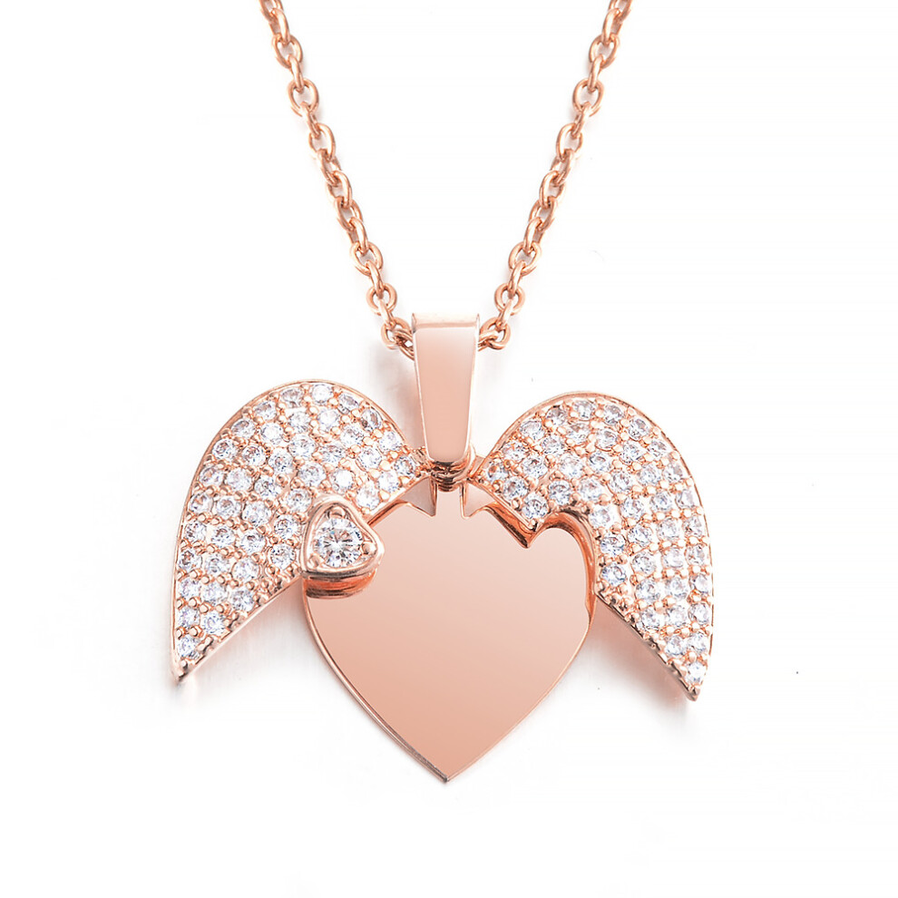 Personalized Women Chain Necklace Engraved Name Openable Heart Crystal Wings Pendant Neklace Valentine Gift With Box