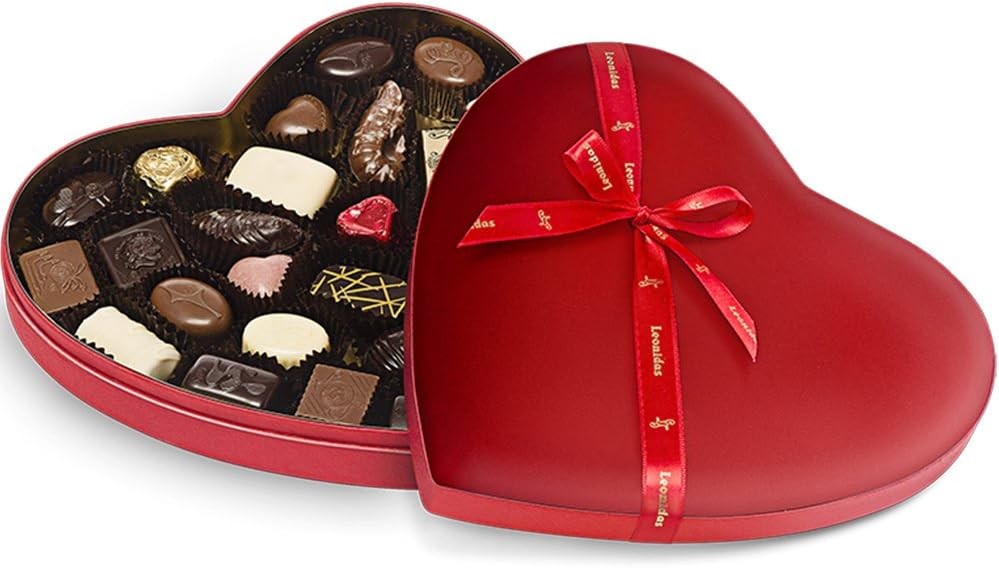Leonidas Valentine Velvet Heart Gift Box, 30 Assorted Pralines, Creams, Truffle