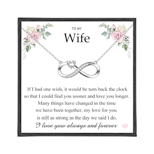 ADVIOK Infinity Necklace for Wife, 925 Sterling Silver Necklace with Heart Cubic Zirconia Birthdays Anniversary Valentine Gift with Card & Box Jewellery Presents for Wife