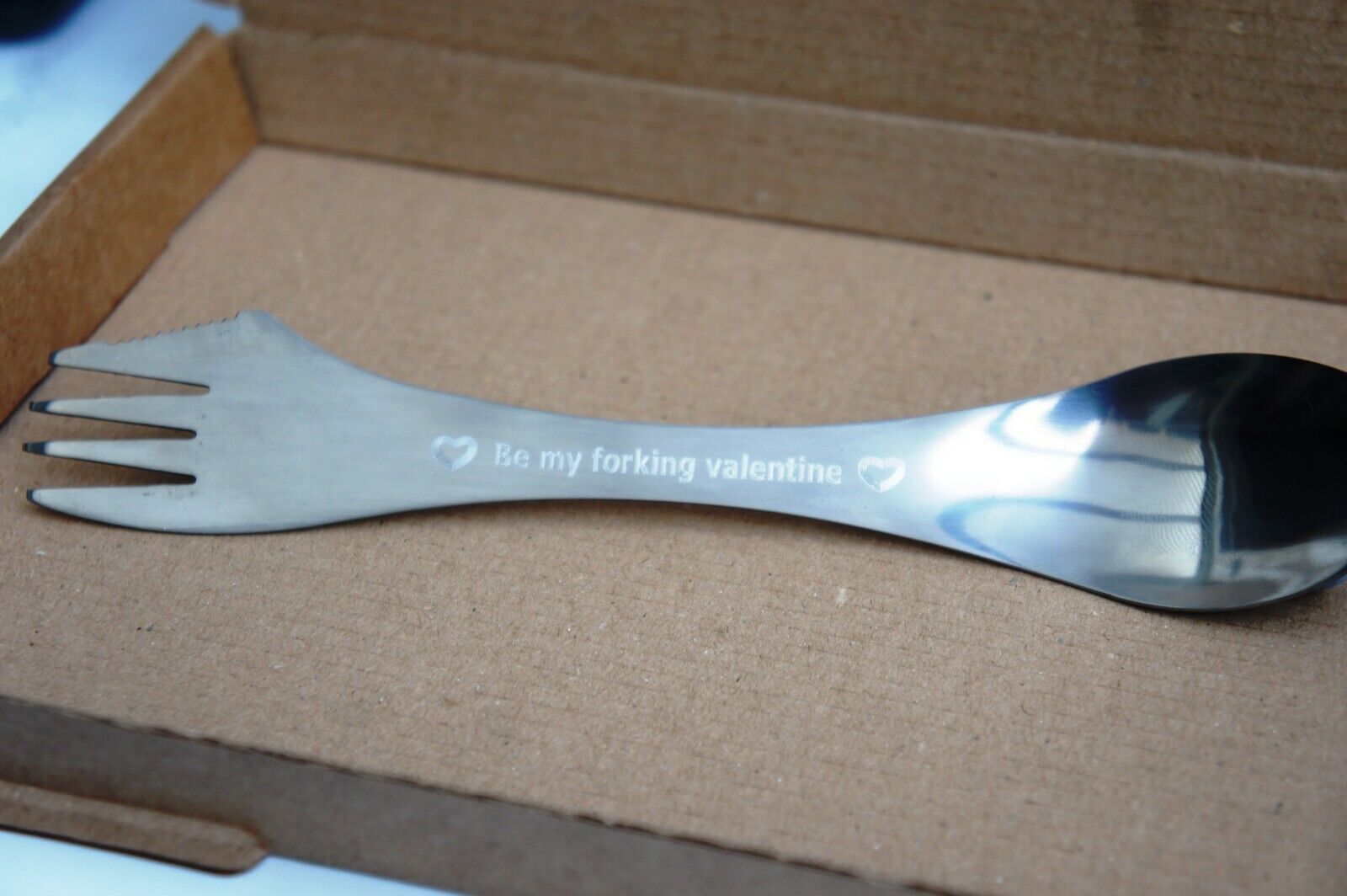FUN VALENTINES GIFT ENGRAVED SPORK - BE MY FORKING VALENTINE - IN GIFT BOX