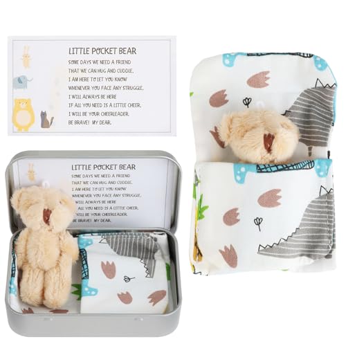 A Teddy Bear Hug in a Tin Box, Mini Plush Pocket Hug Love Token Stuffies Bear Plush Toy Small Cute Doll Tiny Teddy Fun Positive Gift for Valentine's Day Graduation Birthday Friend Girl Women (Brown)
