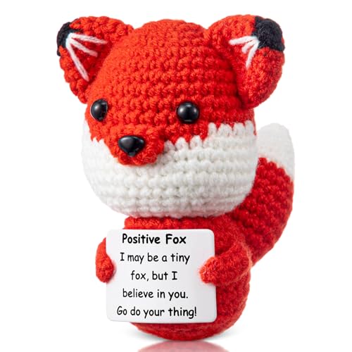Handmade Positive Fox Crochet,Inspirational Gift for Women Men ,Emotional Support Stuffed Animal,Christmas, Birthday, Valentine’s Day Gift for Coworker, Friend, Sister, Student (Positive Fox)