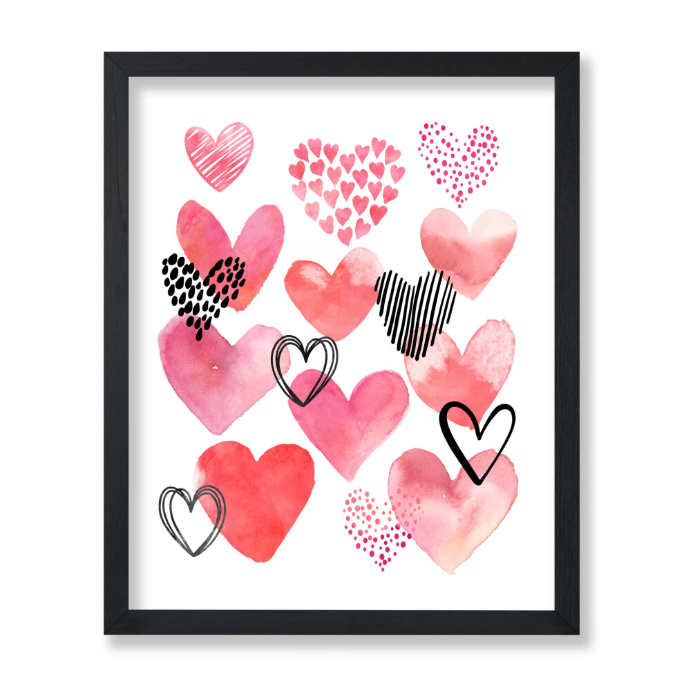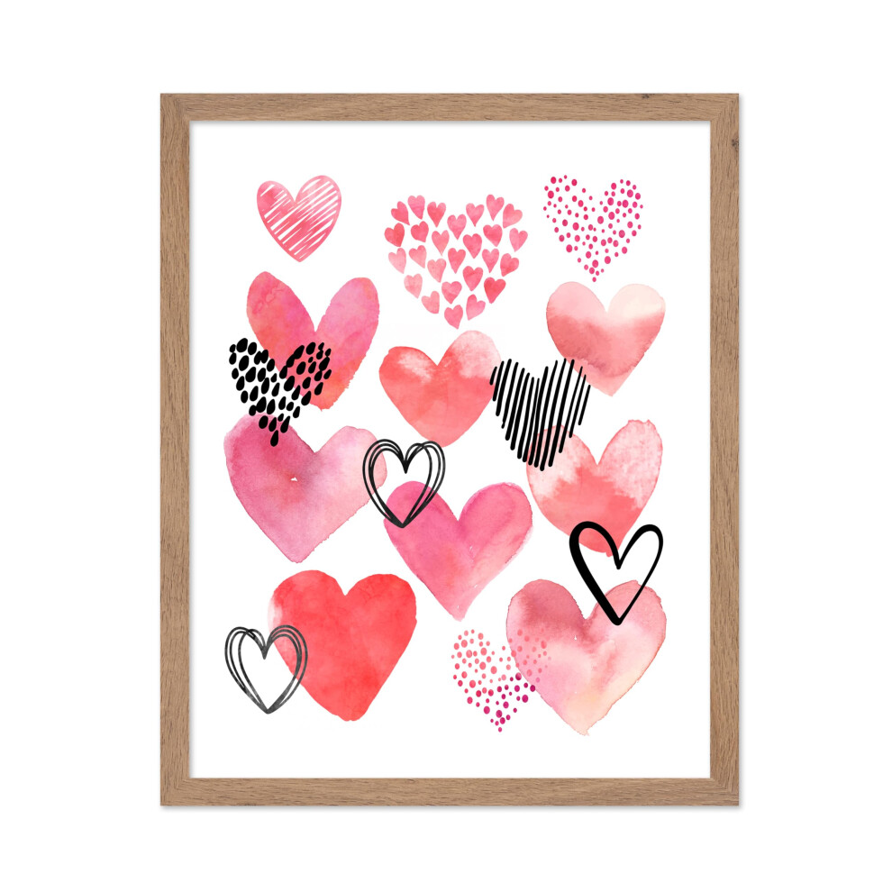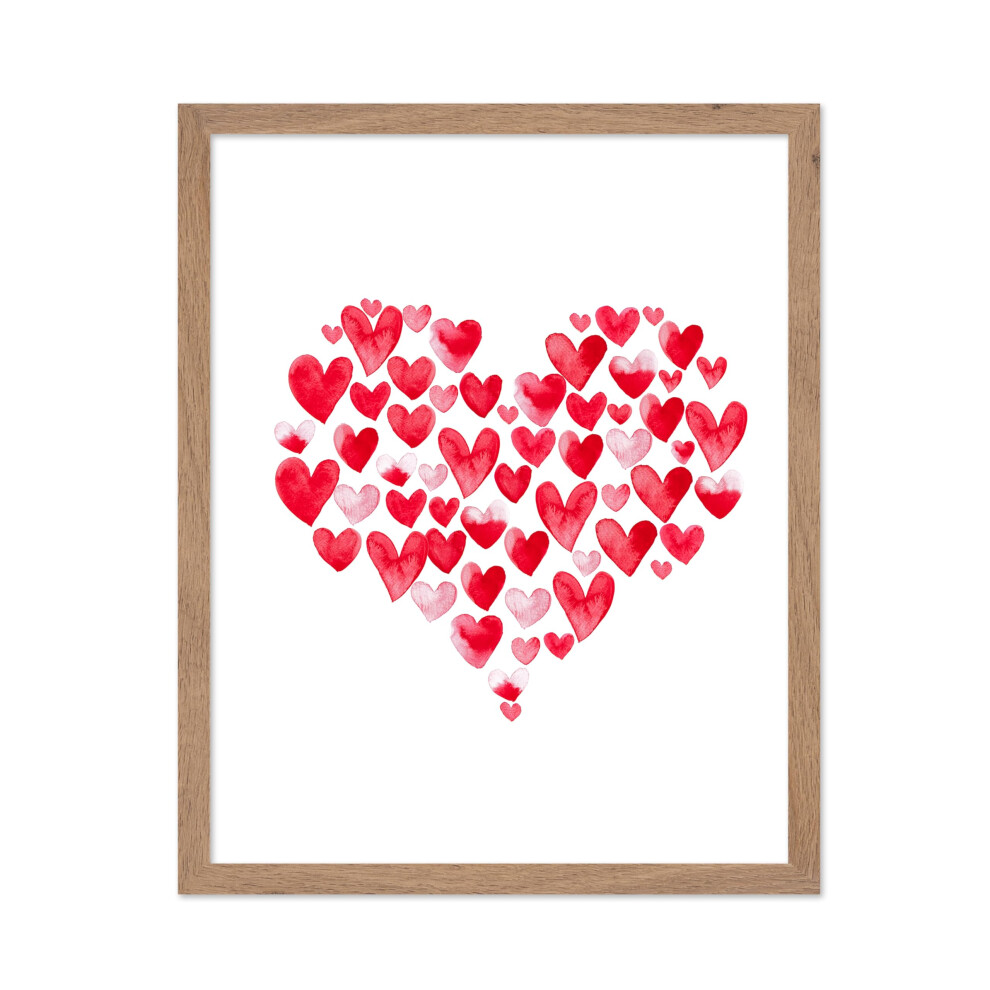 Poster Master Vintage Romantic Poster - Retro Minimalist Print - Gift for Artist Friend - Heart Shapes Valentine Watercolor Love - Wall Decor for