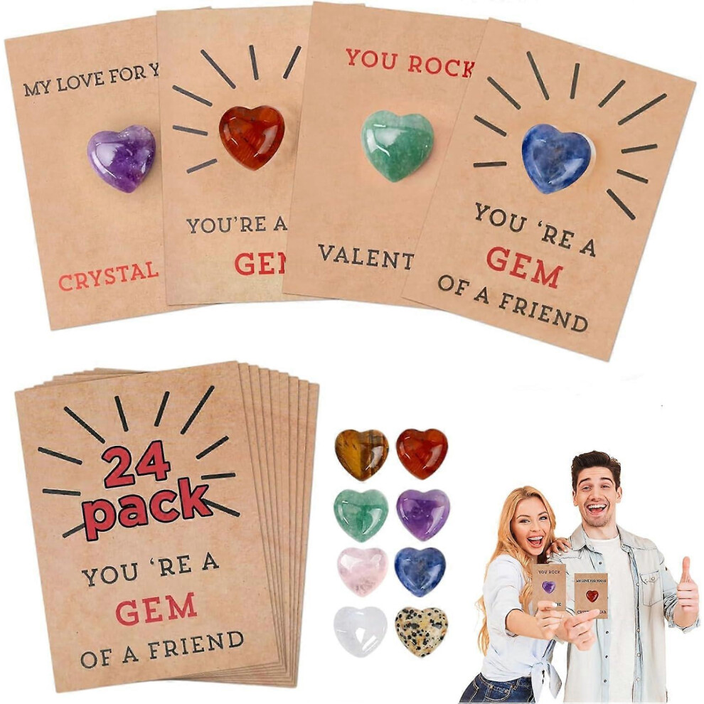 24PCS Valentines Day Cards with Heart-Shape Crystal Stone,YOU'RE A GEM OF A FRIEND,Funny Valentine Exchange Card Gift for Boys Girls Classroom School