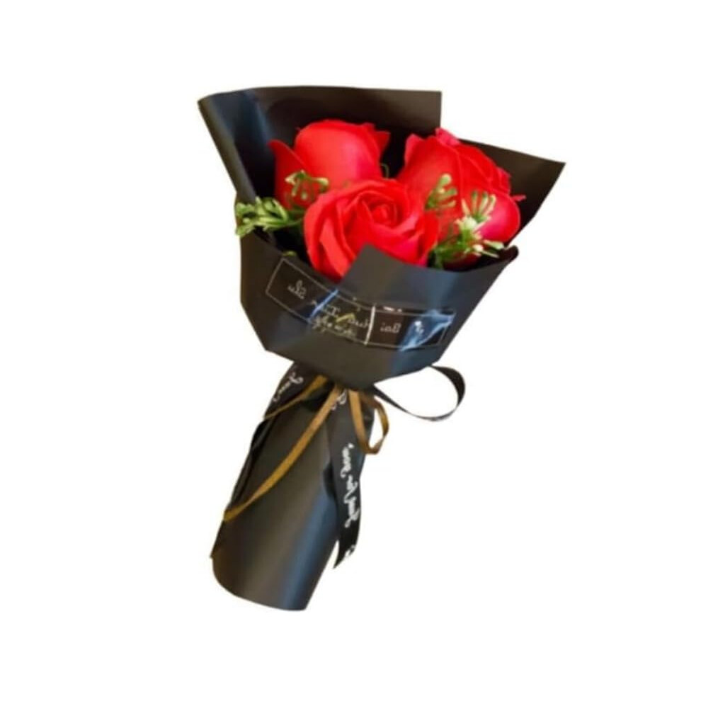 Artificial Rose Bouquet Red 3 Heads With Soap Flower Petals, Valentine's Gift For Women, Friend Or Girlfriend